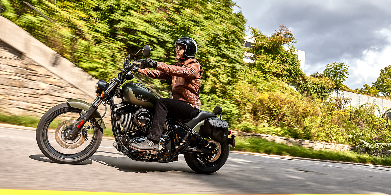 Dank niedriger Sitzhöhe, kompaktem Radstand und mittig montierten Fußrasten ist die Chief bei jeder Geschwindigkeit einfach zu fahren.